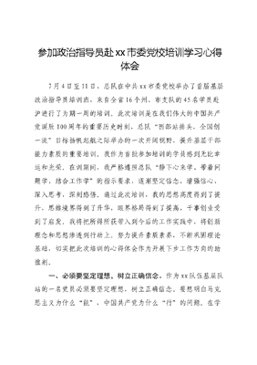 参加政治指导员赴xx市委党校培训学习心得体会.docx