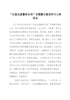 “以案为鉴 警钟长鸣”专题警示教育学习心得体会.docx
