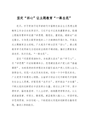 坚定“四心”让主题教育“一路生花”(主题教育心得体会).docx