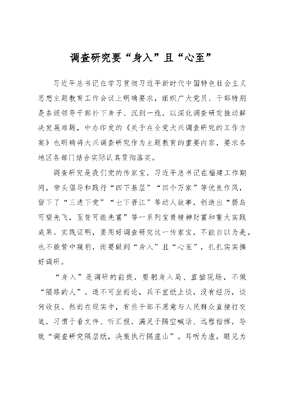 调查研究要“身入”且“心至”(主题教育心得体会).docx