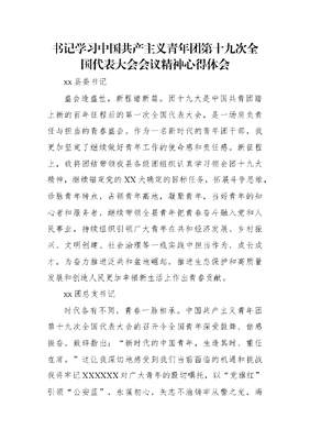 书记学习中国共产主义青年团第十九次全国代表大会+会议精神心得体会.docx