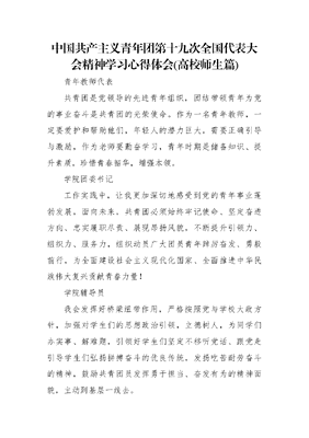 中国共产主义青年团第十九次全国代表大会精神学习心得体会(高校师生篇).docx