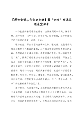 【理论宣讲工作体会文章】做“六有”型基层理论宣讲者.docx