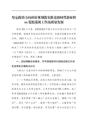 坚定政治方向抓好规划落实推进新时代新征程xx党组巡视工作高质量发展.docx