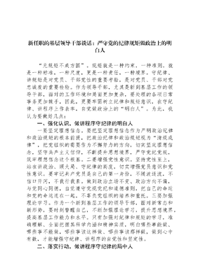 新任职的基层领导干部谈话:严守党的纪律规矩做政治上的明白人.docx