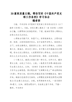 (30篇)《中国共产党支部工作条例(试行)》心得体会范文赏析.docx