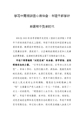 学习中青班讲话心得体会:年轻干部学好新课程不负新时代.docx