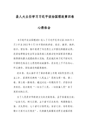 县人大主任学习习近平谈治国理政第四卷心得体会.docx