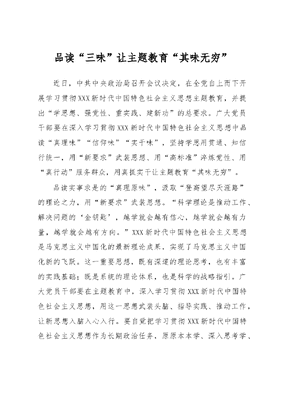 主题教育学习心得体会:品读“三味”让主题教育“其味无穷”.docx