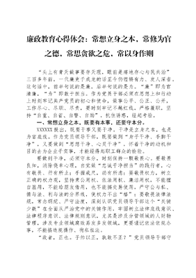 廉政教育心得体会:常想立身之本,常修为官之德,常思贪欲之危,常以身作则.docx