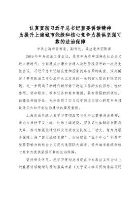 上海市委常委、副市长、政法委书记陈寅学习贯彻习近平总书记重要讲话精神 必须落实旗帜鲜明讲政治的要求.docx