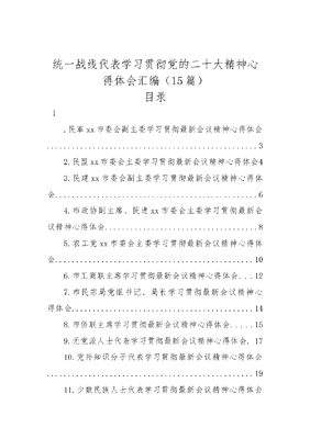 (15篇)统一战线代表学习贯彻党的二十大精神心得体会汇编.docx