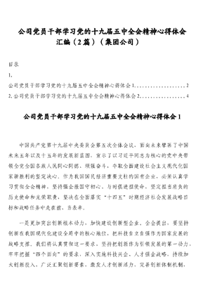 (2篇)公司党员干部学习党的十九届五中全会精神心得体会汇编(集团公司).doc