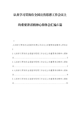 (5篇)认真学习贯彻在全国宣传思想工作会议上的重要讲话精神心得体会汇编.docx