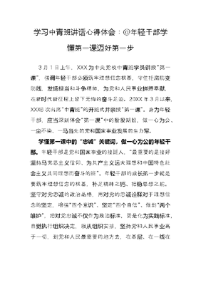 学习中青班讲话心得体会:@年轻干部学懂第一课迈好第一步.docx