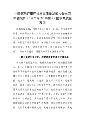 中国医院评审评价与高质量发展大会学习体会报告:“四个聚力”助推XX医院高质量发展.docx