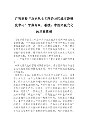 广西高校“马克思主义理论与区域实践研究中心”首席专家、教授:中国式现代化的三重逻辑(20221027).docx