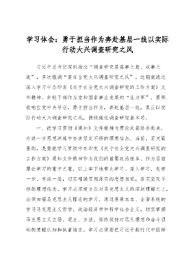 学习体会:勇于担当作为 奔赴基层一线 以实际行动大兴调查研究之风.docx