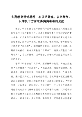 主题教育研讨材料:在以学铸魂、以学增智、以学促干方面取得实实在在的成效.docx