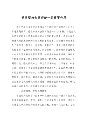 党员坚持知信行统一的重要作用(主题教育心得体会).docx