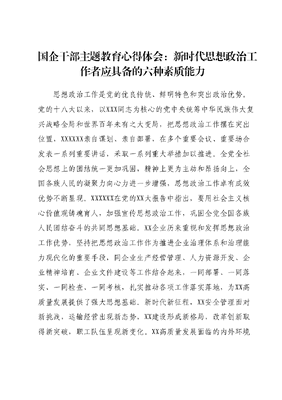 国企干部主题教育心得体会:新时代思想政治工作者应具备的六种素质能力.docx