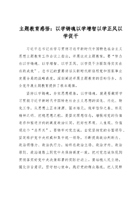 主题教育感悟:以学铸魂 以学增智 以学正风 以学促干.docx