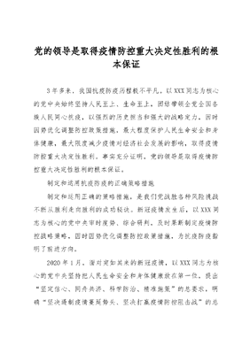 党的领导是取得疫情防控重大决定性胜利的根本保证.docx