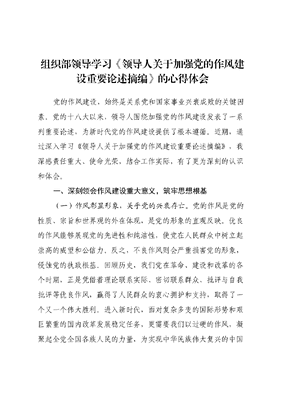 组织部领导学习《习近平关于加强党的作风建设重要论述摘编》的心得体会.docx