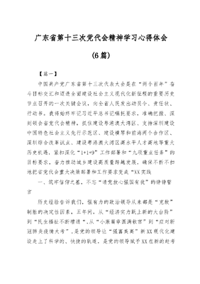 (6篇)广东省第十三次党代会精神学习心得体会.docx