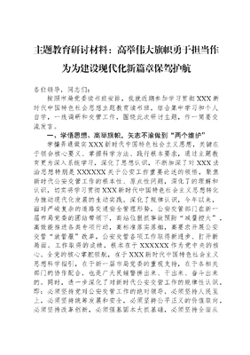 主题教育研讨材料:高举伟大旗帜+勇于担当作为为建设现代化新篇章保驾护航.docx