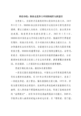 科技小院:探索走进乡土中国铸魂育人新途径.docx