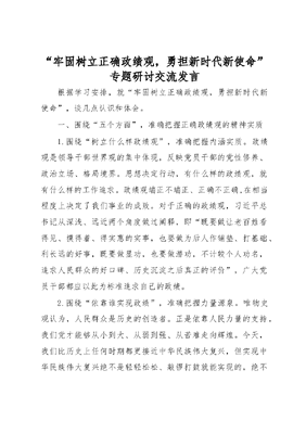 “牢固树立正确政绩观,勇担新时代新使命” 专题研讨交流发言.doc