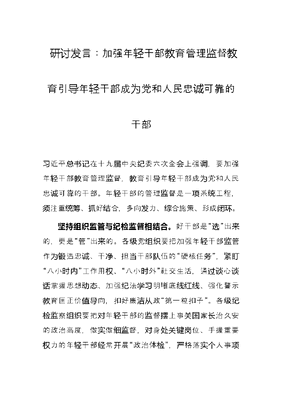 研讨发言:加强年轻干部教育管理监督 教育引导年轻干部成为党和人民忠诚可靠的干部.docx