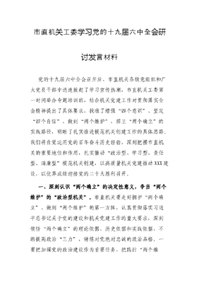 市直机关工委学习党的十九届六中全会研讨发言材料.docx