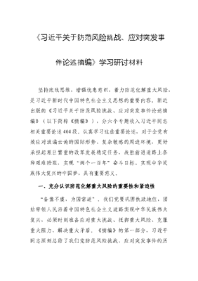 《习近平关于防范风险挑战、应对突发事件论述摘编》学习研讨材料.docx