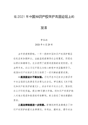 在2021年中国知识产权保护高层论坛上的发言.docx