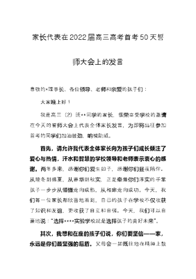 家长代表在2022届高三高考首考50天誓师大会上的发言.docx