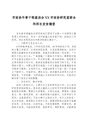 市政协年青干部座谈会XX市政协研究室综合科科长发言摘登.docx
