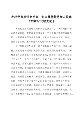 年轻干部座谈会发言:切实履行好党和人民赋予的新时代职责使命.docx
