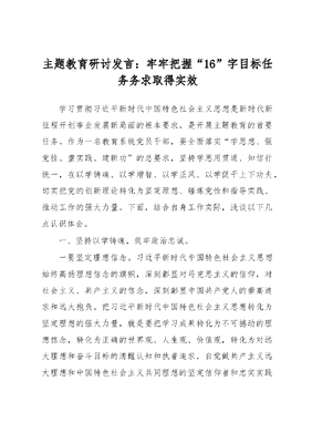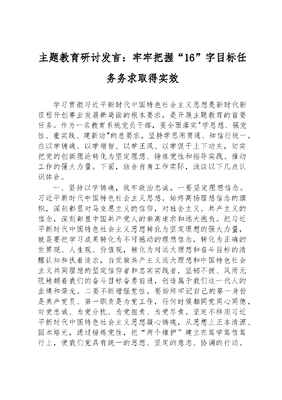 主题教育研讨发言:牢牢把握“16”字目标任务务求取得实效.docx
