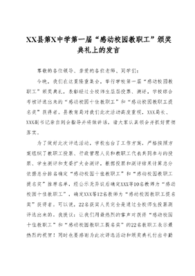 XX县第X中学第一届“感动校园教职工”颁奖典礼上的发言.docx
