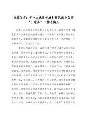 交流发言:学中办优良传统和作风 做办公室“三服务”工作老实人.docx