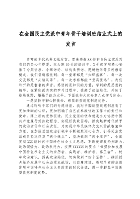 在全国民主党派中青年骨干培训班结业式上的发言.docx