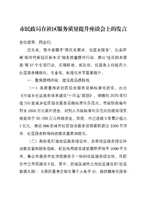市民政局在社区服务质量提升座谈会上的发言.docx