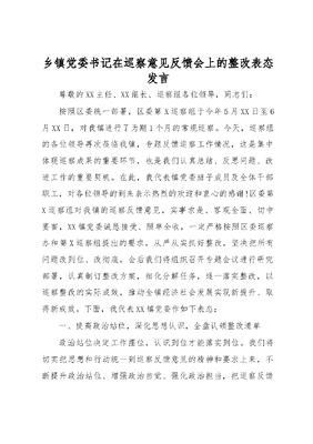 乡镇党委书记在巡察意见反馈会上的整改表态发言.docx