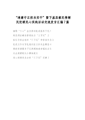 (7篇) “清廉守正 担当实干”暨下基层察民情解民忧暖民心实践活动交流发言汇编.docx