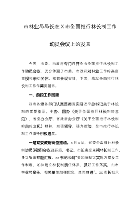 市林业局局长在X市全面推行林长制工作动员会议上的发言.docx