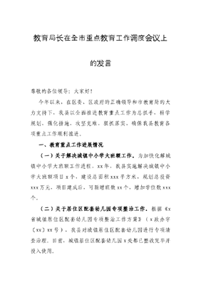 教育局长在全市重点教育工作调度会议上的发言.docx