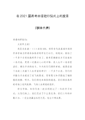 在2021届高考出征壮行仪式上的发言(学妹代表).docx