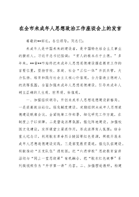 在全市未成年人思想政治工作座谈会上的发言.docx
